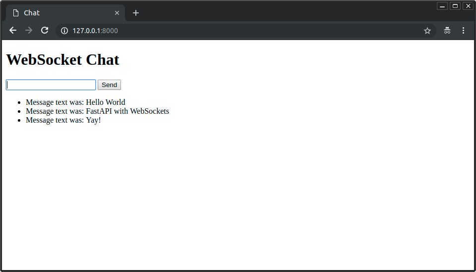 そして、 WebSocketsを使用したFastAPIアプリケーションが応答します。